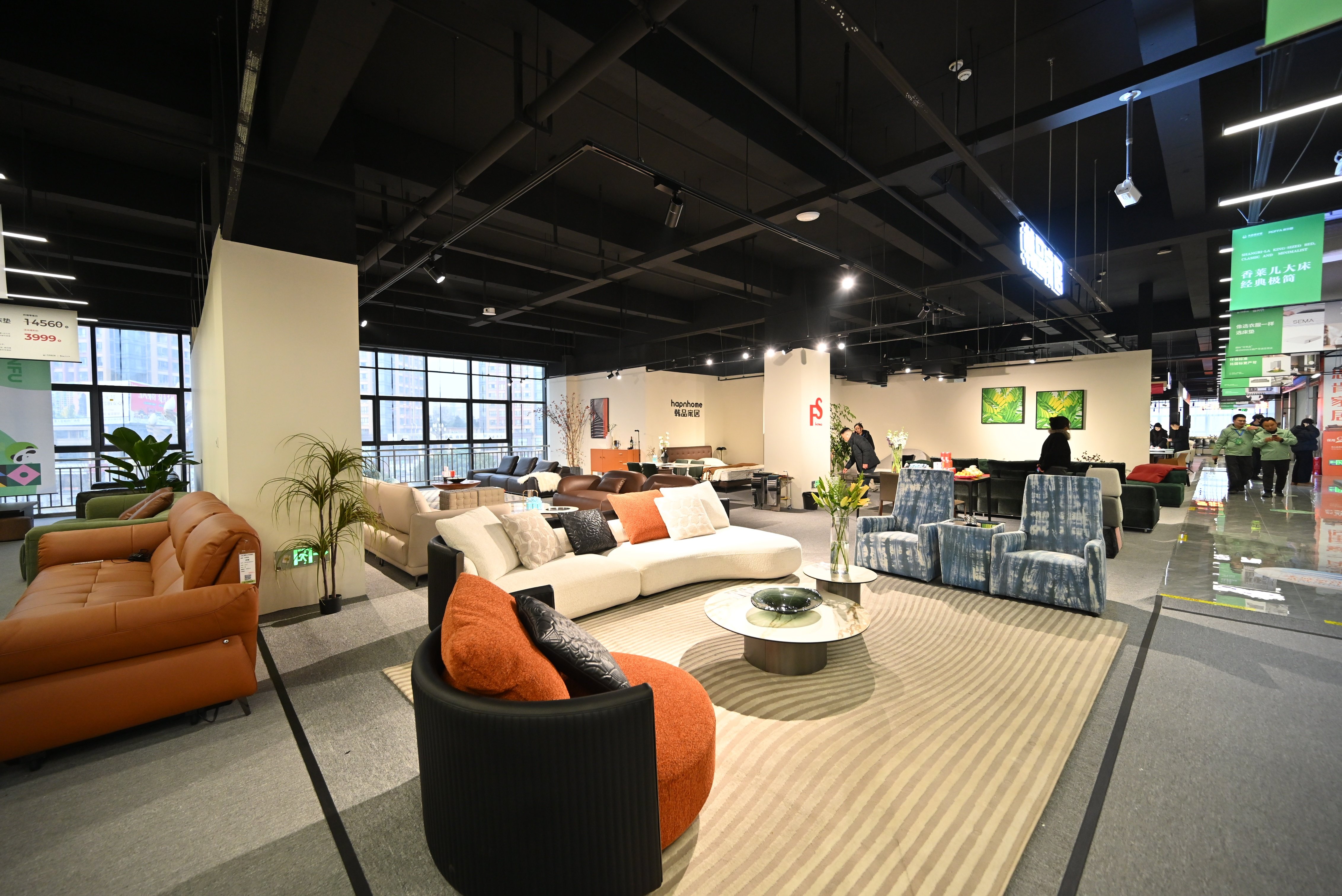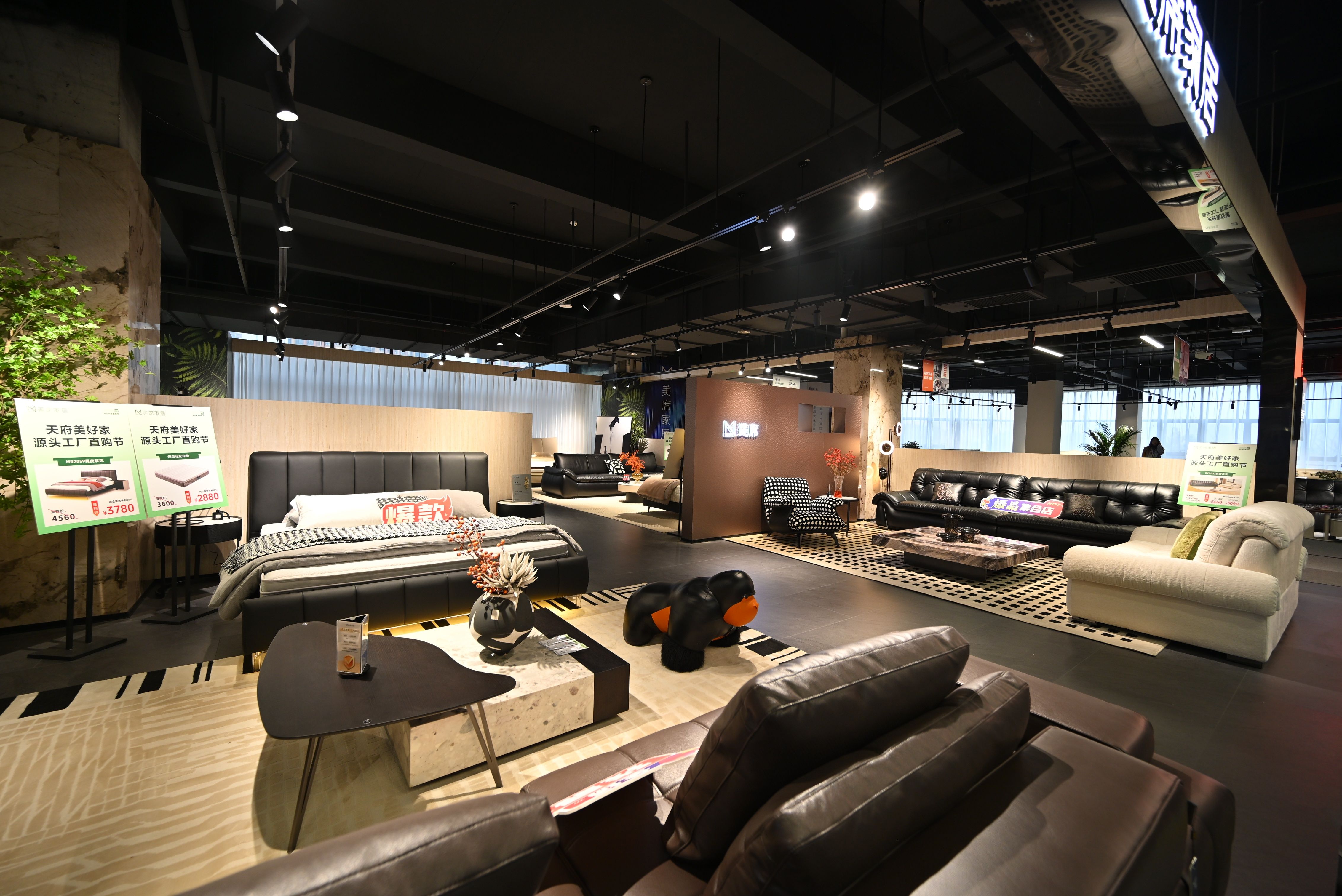 步入位于崇阳大道1号崇州智能大厦的全新展销中心,三层楼高的空间内处处洋溢着新春的热闹与家居艺术的美感。